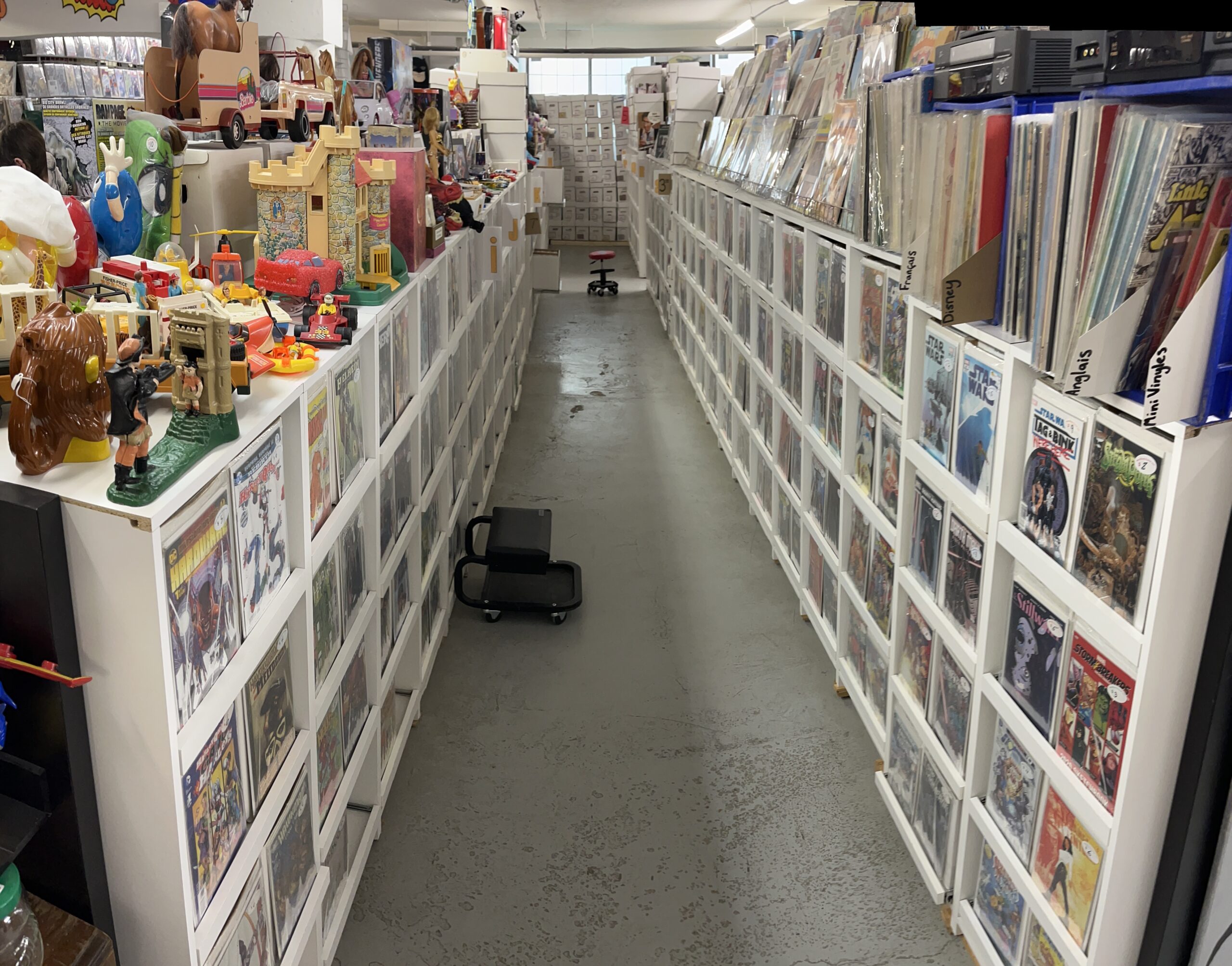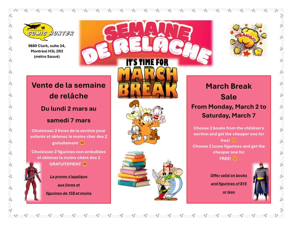 If you come to Montreal – don’t hesitate to stop by – you will have lots of goodies to look at ! Hours of pleasure ! NO COMMENTS YET 500,000 english comics and more, 10,000 french comics and over 8,000 softcovers and hardcovers, novels, omnibus, mangas, and reference books. Tons of figurines and other miscellaneous items to discover. Collectors, this is your paradise! Categories: Uncategorized December 2, 2023 by Marc Parenteau